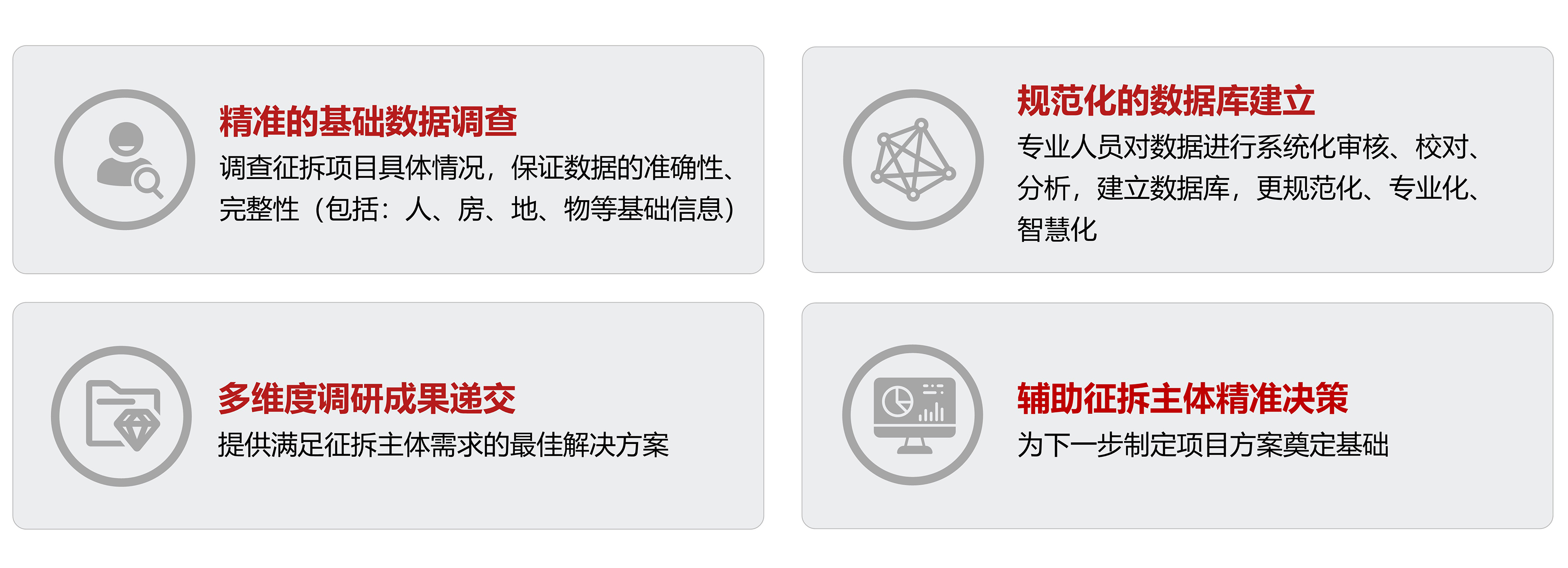 以專業化、科技化、標準化的服務,完成項目前期調查工作,通過科技助力、成果遞交等方面的專業化手段,助力項目有效實施。